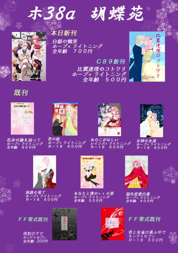 次のイベントは夏コミか大阪インテか秋のFFオンリーになるかと思います。特に大阪は仕事と家族との交渉如何になります。